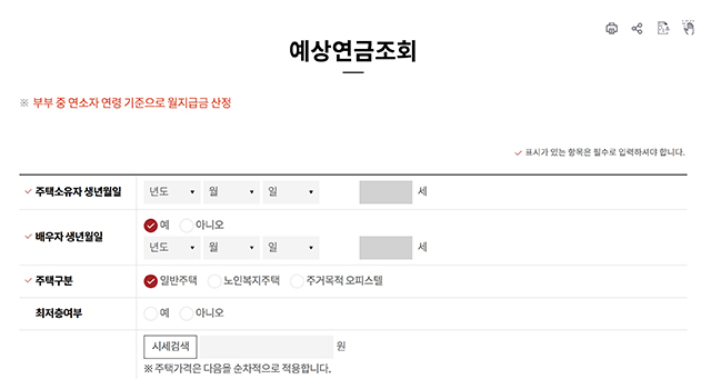 | 공시가격 | 가입자 연령 | 월 예상 연금액 |